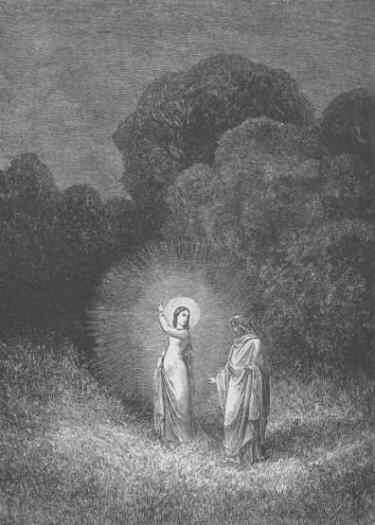 73 Тебя не раз, хваля и величая, Пред господом мой голос назовет. Я начал так, умолкшей отвечая: 76 «Единственная ты, кем смертный род Возвышенней, чем всякое творенье, Вмещаемое в малый небосвод, * 79 Тебе служить — такое утешенье, Что я, свершив, заслуги не приму; Мне нужно лишь узнать твое веленье. 1