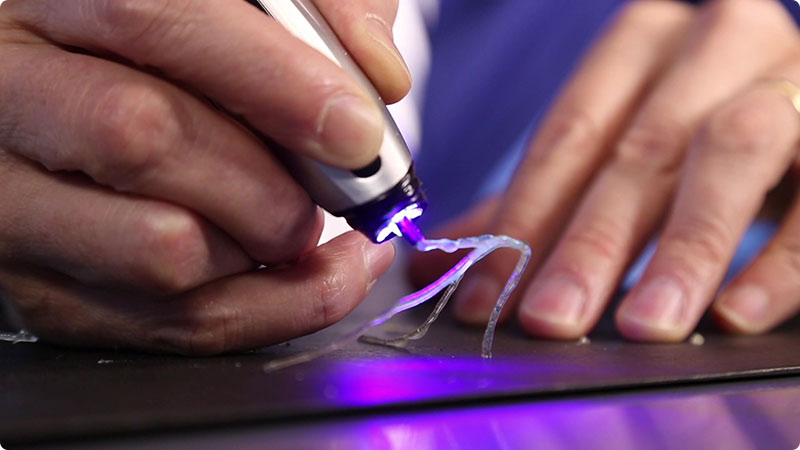 С её помощью рисунки становятся объёмными. Вы создаете своего рода мини-скульптуру. Как же она это делает? Внутрь вставляется картридж с чернилами, которые выходят из кончика ручки при нажатии на кнопку. Толщина геля составляет в среднем 3 мм. При выделении под действием ультрафиолета, чернила быстро застывают в той форме, которую вы им придадите.