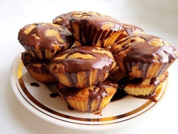 4. Выпекать в нагретой духовке до 180 гр., 25-30 минут.Готовность проверять деревянной шпажкой.Сверху залито шоколадом, можно обсыпать сахарной пудрой.