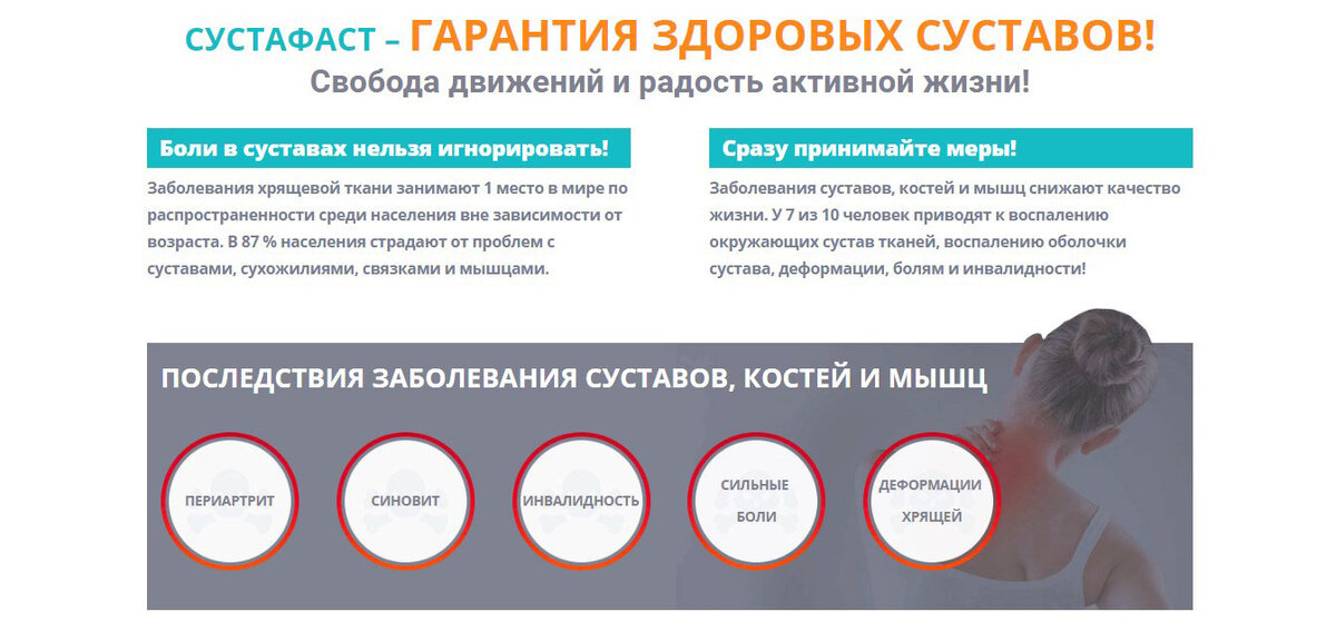 Лечение и восстановление суставных тканей происходит благодаря природному составу препарата Сустафаст.