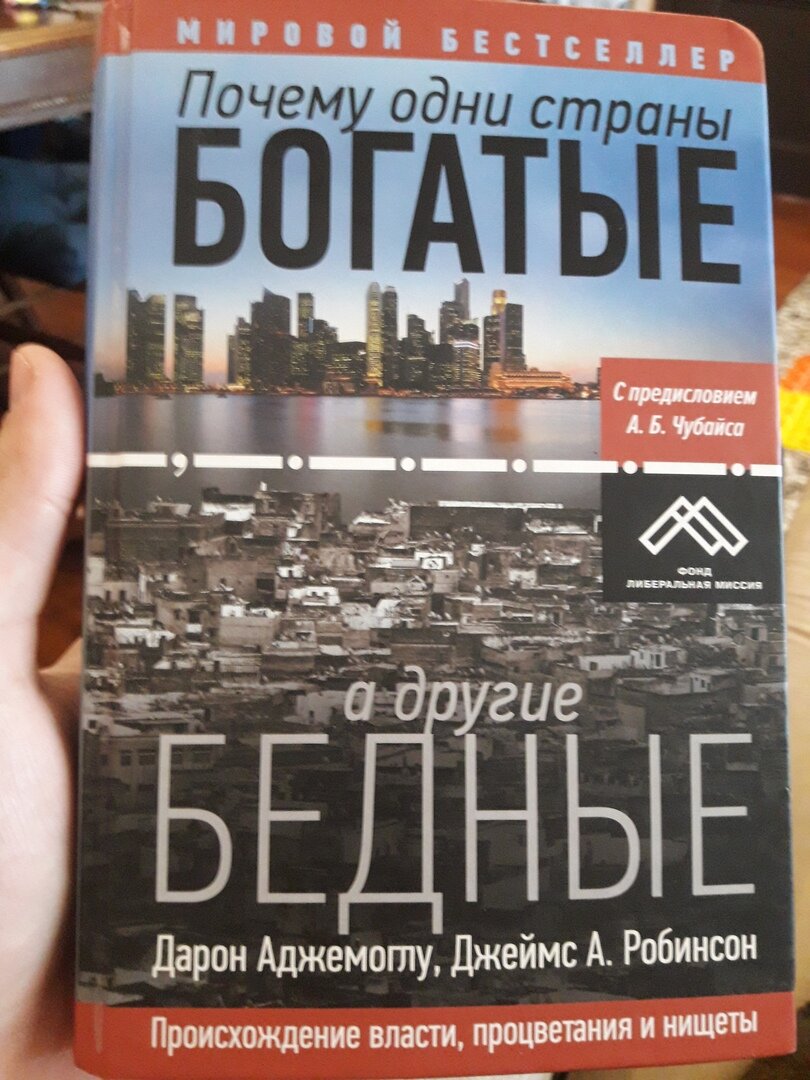 18/52: Дарон Аджемоглу, Джеймс А. Робинсон "Почему одни страны богатые, а другие бедные" Собственно говоря, в русскоязычном названии книги кроется основной ее посыл и основная дискуссия, о которой повествуют авторы на протяжении всей, довольно-таки внушительной, книги. На этом конечно же можно было закончить мой обзор, но нет, т.к. не даром же Дарон Аджемоглу (примечание автора: в некоторых русскоязычных источниках известен, как Асемоглу) на данный момент входит в 10ку самых цитируемых экономистов мира. Авторы отстаивают точку зрения о том, что нет никакого географического, климатического либо еше какого-то детерминизма в развитии стран. Их социально-экономическая судьба определяется двумя типами институтов ( примечание автора: набор правил и механизмом их принуждения) - инклюзивными и экстрактивными, а также их сочетаниями. Если первые нацелены на вовлечение как можно большего количества участников в происходящие политические и экономические процессы, распределение прав, плюрализм