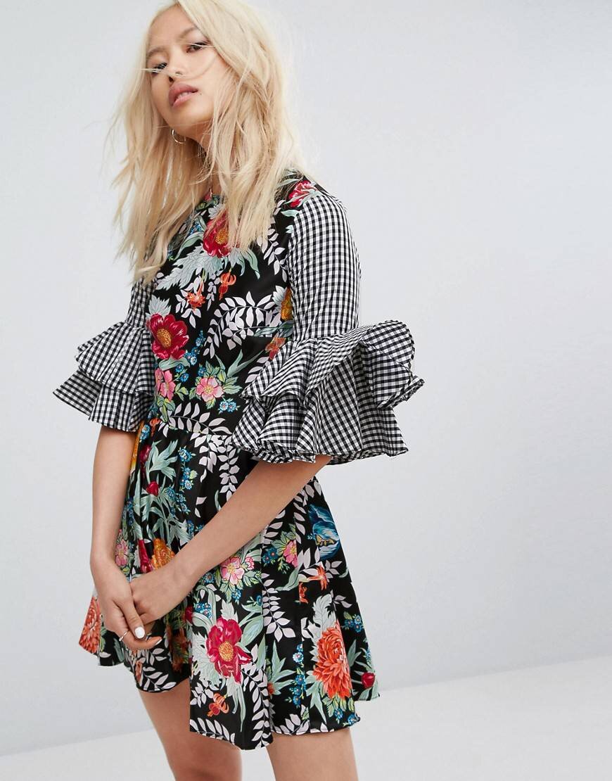 Цветы – это олицетворение женственности нежности в женской одежде, такой принт пользуется огромной популярностью уже несколько сезонов подряд и этот не исключение. Если раньше в одежду были включены лишь принты из цветов, то сейчас дизайнеры надумали ввести в моду вещи полностью из материала в крупный или мелкий цветок. Цветы на одежде – тренд сезона Самые популярные цветочные принты этой весной и лета: - Яркие крупные бутоны роз и синие мелкие васильки. - Большие красные маки, орхидеи разных оттенков и миниатюрные фиалки. - Сочные яркие цвета бутонов цветков на летних вариантах платьев. Модной дизайнерской новинкой сезона будут легкие шифоновые платья пастельных тонов, с нежными мелкими цветочными принтами. Такие романтичные наряды отлично подойдут молодым девушкам, как вариант выпускного платья. В пору весеннего расцвета маленькие цветочки будут актуальны и очень привлекательны. Правильное сочетание одежды с цветочными принтами Изображенные цветы на одежде способны выделить девушку и