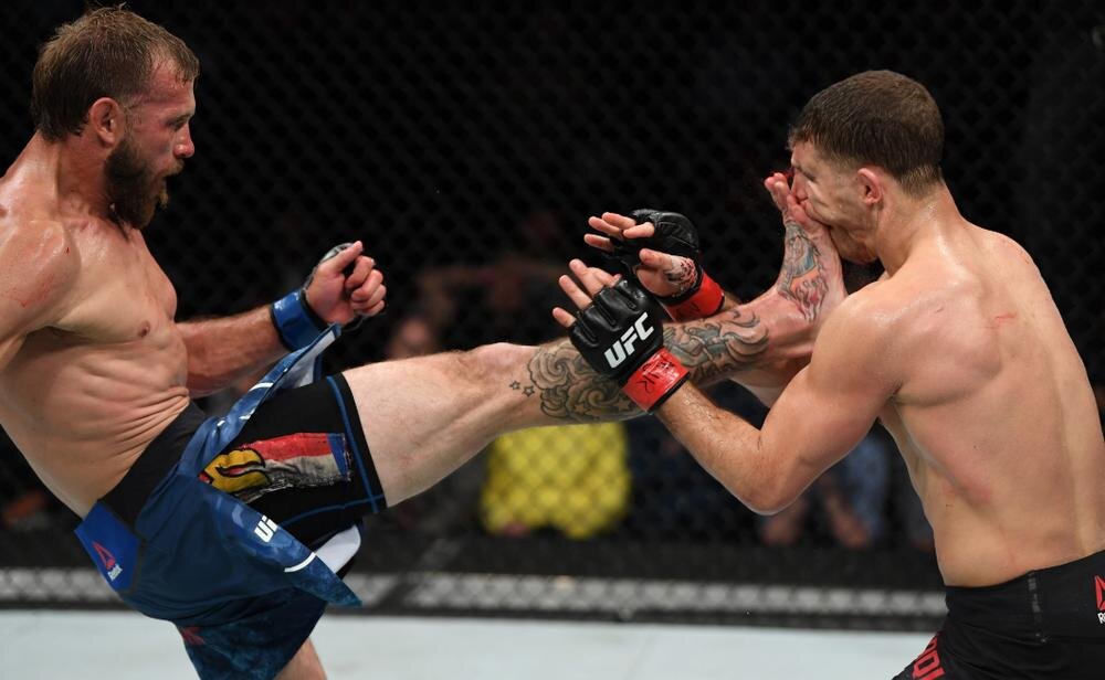Сегодня ночью в канадской Оттаве прошел турнир UFC Fight Night 151, украшенный противостоянием топовых легковесов Эла Яквинты и Дональда "Ковбоя" Серроне. Серроне победил в доминирующем стиле единогласным судейским решением, при этом и Яквинта выдал довольно зрелищный поединок. Старания бойцов были отмечены боссами промоушена - и Дональд, и Эл получат по $50.000 в качестве бонуса за бой вечера. Выступление "Ковбоя впечатлило многих людей, известных в мире ММА. Некоторые высказывания предлагаем в данном материале. Реакция бойцов на бой "Ковбоя" Серроне и Яквинты на UFC Fight Night 151: Джимми Ривера: Меня не волнует, нравится он вам или нет. "Ковбой" - крутой ублюдок! Новый батя UFC!
