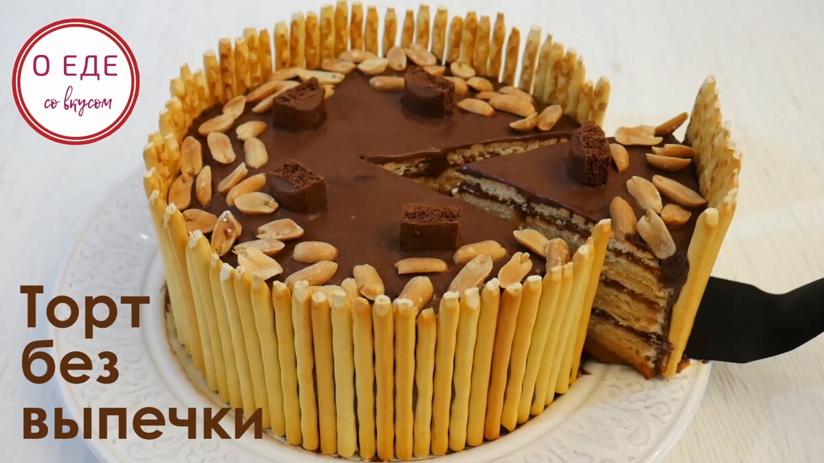 Торт без выпечки. Простой рецепт. Как приготовить торт из печенья. Ингредиенты: - молоко 1 стакан - сахарная пудра 120г - сметана густая 20-30% 150г - какао 1 ст.л. - сливки 33% 300г - ванильный экстракт 1 ч.л. или ванилин - вареная сгущенка 1 банка - галетное печенье типа Мария 400г - печенье соломка 200г - арахис для украшения - шоколад для украшения 1. Готовим крем из сливок: холодные сливки, половину сахарной пудры и ванилин взбить миксером до загустения сливок, крем должен держать форму. 2. Отдельно готовим сметанный крем: сметану с оставшейся сахарной пудрой и какао взбить миксером до однородного гладкого состояния. 3. Металлическое кольцо для торта обернуть пищевой пленкой. Блюдо для торта, где мы будем собирать торт, смазать тонким слоем крема, чтобы печенья приклеились и держались. Ставим кольцо на блюдо. 4. Берем стакан молока, окунаем печенье и выкладываем на тарелке по кругу у краев, если хотите супер мягкий торт, тогда печенье окунаете в молоко и несколько секунд под