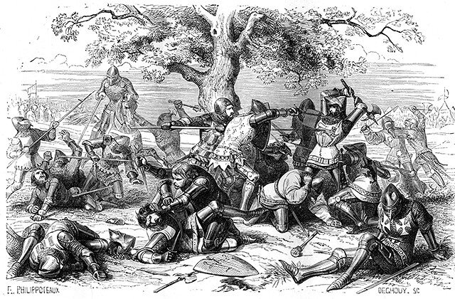 Во время Столетней войны произошло немало битв и сражений, многие из них известны во всем мире. Но есть одно сражение, о котором стоит упомянуть, хоть оно было и не такое масштабное, как остальные, и его не проходят на уроках истории в школе. В бою поучаствовали лишь 60 воинов с двух армий противников. Но несмотря на это, сражение было одно из самых тяжёлых, можно назвать его столкновением двух рыцарских сторон.