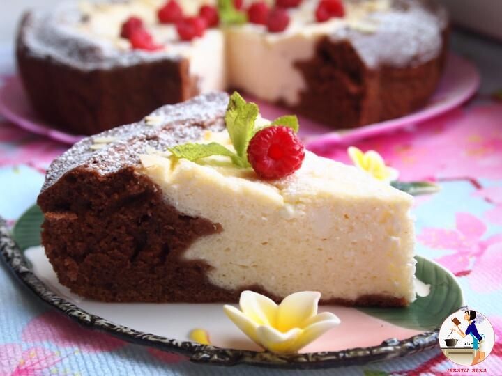 Ko'rinishi ishtaxa ocharligi bilan birga mazasi ham juda mazali. Har qanday dasturxondan o'zining yorqin o'rnini egallab, barcha uchun ma'qul bo'luvchi vatrushka. Hattoki tvorog mahsulotini hushlamaydigan kishilar uchun ham ma'qul keladi. Bolajonlar esa miriqib tanovvul qilishlari turgan gap. Kerakli masalliqlar: Tayyorlash usuli: 1. Birinchi navbatda xamirni tayyorlang. Buning uchun: 3 dona tuxum, shakar, bir chimdim tuzni birlashtiring. Aralashtiring. 2. Smetana va yumshatilgan saryog'ni soling va aralashtiring. 3. Smetanali massaga un, ichimlik sodasi va kakao kukuni birlashmasini soling. Quyuq, smetana kabi massa xamir qoring. 4. Bu bosqichda asosni tayyorlang. Tvorogni sanchqi yordamida ezing va 3 dona tuxumni soling. 5. Shakar, vanilin, manniy yormasini soling. So'ng, birlashtirilgan masalliqlarni blender yordamida, bir xil massa hosil bo'lgunga qadar aralashtiring. 6. pishirish qolipiga folga yoki pergament qog'ozi yozing. So'ng, avval shokoladli xamirni soling. Shokoladli xami