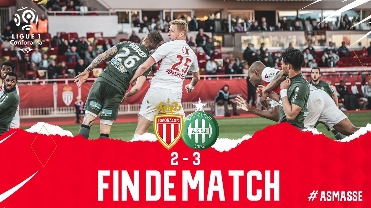 Монако проводит ужасный сезон. В Чемпионате Франции клуб идет на 17 строчке с 33 очками. В 35 туре Лиги 1 Монаковский клуб принимал"Сент-Этьен". Хозяева забили первым и казалось победа уже есть(Желсон"18"). Но дальше Сент-Этьен неожиданно забил 3 гола подряд авторы (Балло-Туре ,Кабеллея,Норден).на 90+2 Монако смогла забить(Винисиус) . Хозяева создавали больше атак, но забить так и не смогли .