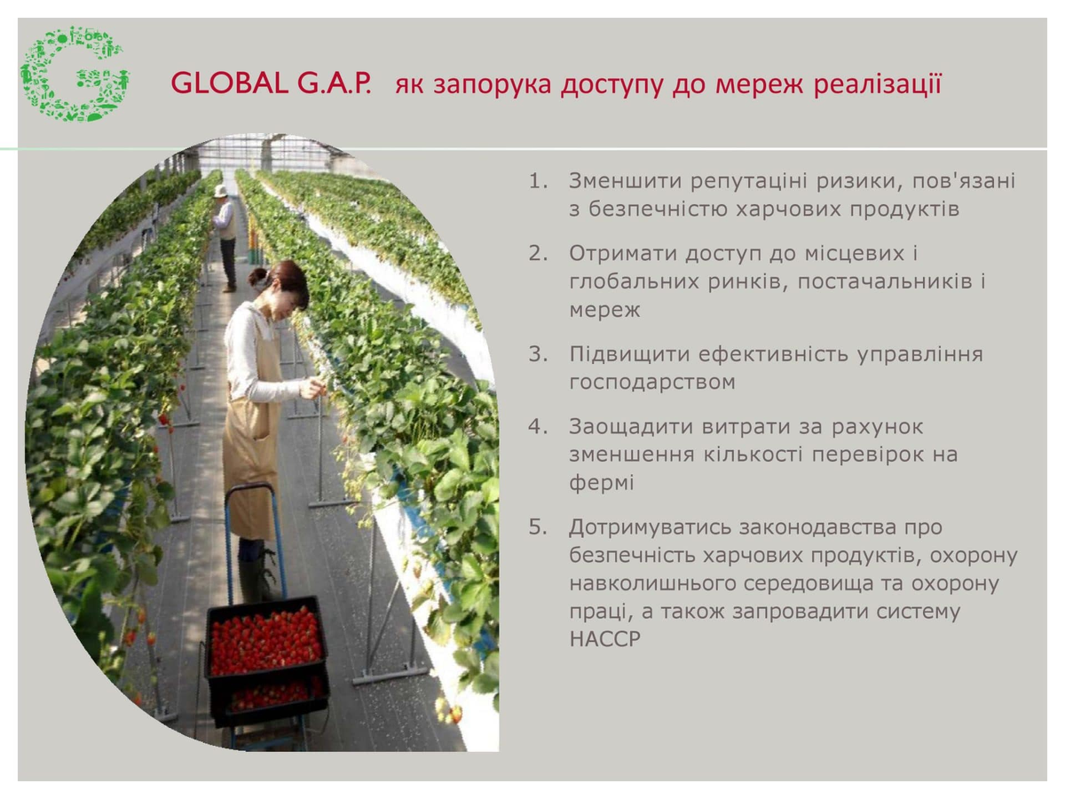 При цьому стандарти Global G.A.P. розроблені для всіх видів сільськогосподарської продукції, навіть не харчової.