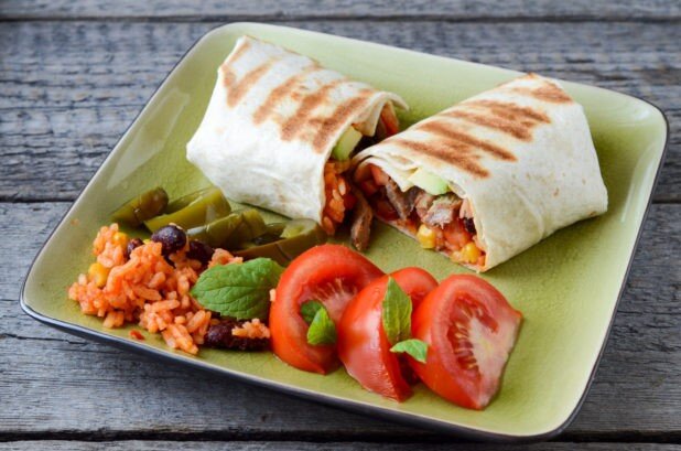 Буррито можно употреблять «из рук», как фаст-фуд, но я рекомендую подавать его в качестве полного блюда на тарелке. Идеально в сопровождении дополнительной порции свежих овощей, риса, по желанию густой сметаны и нарезанного перца халапеньо.Для разнообразия я рекомендую попробовать такие добавки, как сыр моцарелла, оливки и сальсу из овощей и фруктов, которые можно добавить перед тем, как раскатать лепешку.