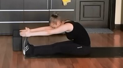 Немного лирики. Связки по своей структуре больше напоминают пластилин, чем резинку. Холодным не гнется и не тянется, при любом неловком движении рвется. Зато если аккуратно согреть и размять, пластилин будет тянуться и послушно принимать любую форму. Как научить связки тянуться, а тело – гнуться? Во-первых, разминка и суставная гимнастика, серия глубоких вдохов-выдохов для подготовки организма к нагрузке. Вам в прямом смысле должно стать тепло. А дальше работаем 10-15-секундными интервалами – ровно столько нужно, чтобы связки успевали «запомнить» положение. Возьмем для примера самое простое упражнение на гибкость – складочку – сидя наклониться и дотянуться руками до стоп. Если на старте у вас этого не получается, возьмите полотенце или ремень, перекиньте через стопы и натяните на себя. Если вы можете дотянуться до стоп, поставьте за них пару толстых книг, чтобы было куда стремиться. Создайте взаимное натяжение по всем сторонам получившегося треугольника Пятки давят вперед, копчик стре