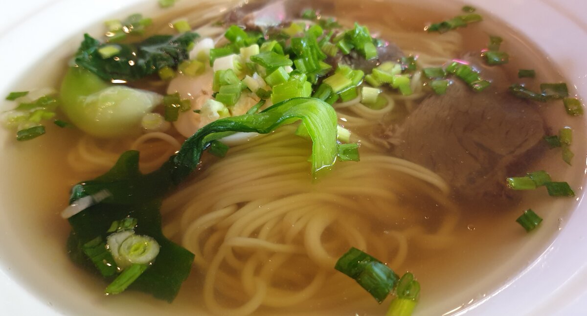 Но начну с того, что призна́ю свою ошибку: я отказался от бесплатного соуса, решив что базовый вкус блюда будет достаточно интересным. В результате первое впечатление было смазано некоей пресностью блюда, будто актер играет на пустой сцене без декораций. Мясо нарезанное тонкими ломтями мягкое, с насыщенным вкусом, сразу вспомнился вчерашний Фо Бо, но в отличие от Фо, мяса слишком мало, увы. Бульон узнаваемой, но слабой китайской вкусоароматикой, показался водянистым. Возможно, это задумка под соус? А вот лапши много, она тонкая, упругая и эластичная. Я не знаю, хорошо это или нет, но ее вкус в сочетании с бульоном у меня вызвал стойку