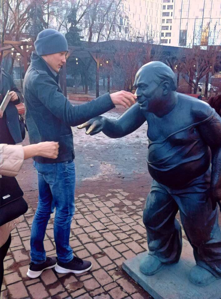 Ученик Вольфа Мессинга, писатель Гарри Барский стоял у памятника Леонову и правой рукой тёр палец артиста.