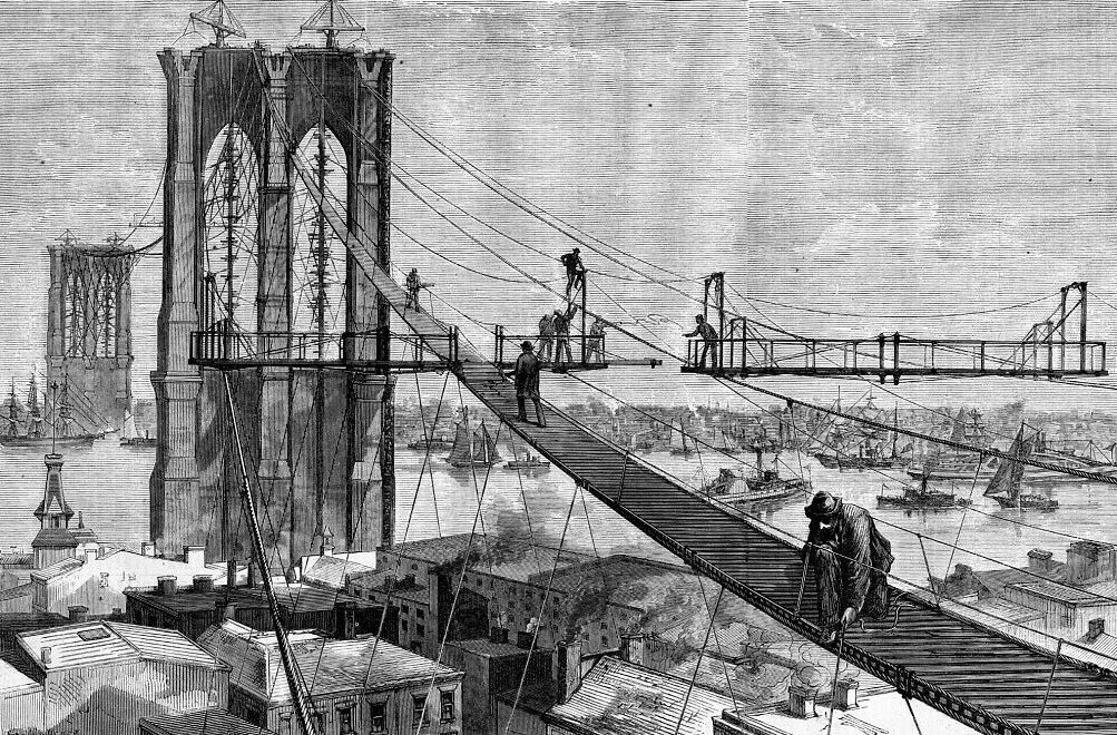 АКШларининг дунега танилиб улгурган Бруклин ва Манхеттен шахарларини бир бири билан боглиб турувчи Бруклин купригининг курилиши тарихи 19 асрга бориб такалади. 1867 йилга кадар Манхеттенда ишлайдиган америкаликлар Ист Риверни кичик одам ташувчи кемаларда кечиб утишган. 1867 йилги киш эса одамларни Ист Ривердан утишига имкон бермаган, тушунадиган килиб айтганда сув музлаганидан кемалар харакати Ист Риверда тухтаб колган.Кейин мехнаткаш ахоли Ист Риверни конкида кечиб утишга мажбур булган. Айнан шу 1867 йилда асли келиб чикиши германиядан булган инженер Джон Роблинг Ист Ривер устидан Манхеттен ва Бруклинни бир бири боглаб турувчи куприк лойихаси устида ишлай бошлайди. 1868 йилда Нью Йорклик сенатор Генри Мерфи яна бир сиесатчи Уильм Твидга пора бериб мазкур куприк курилиши учун хукумат рухсатини олишга муваффак булади. Орадан бир йил утиб эса яъни 1869 йилда инженер Джон Роблинг тусатдан хасталаниб вафот этади. Куприк лойихаси эса табийки унинг угли Вашингтон Роблинг кулига утади ва Нью