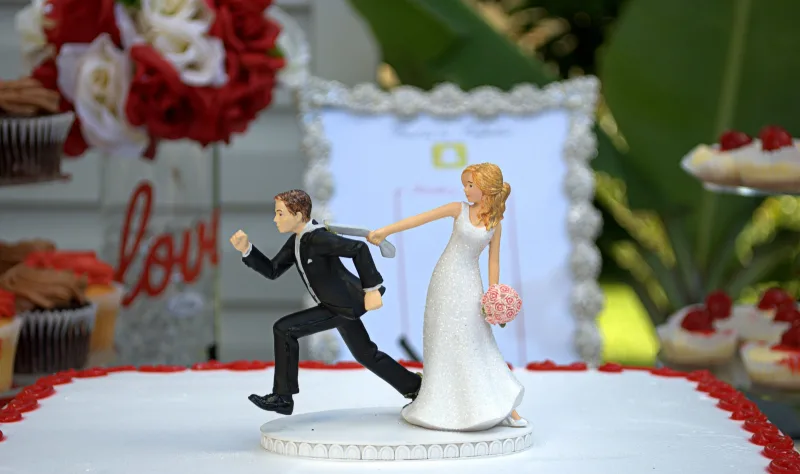 День свадьбы это одно из самых запоминающихся событий в вашей жизни. Многие люди делают его ещё более запоминающимся с помощью украшения своего торта. 1. Невеста ловит жениха, который пытается спастись от брака 2. Женщина держит жениха на цепи 3. Теперь вы "связаны" узами брака 4. Очень откровенная пара 5. Без комментарий 6. Еще одни узы брака и видимо по желанию родителей 7. Снова невеста не оставляет мужчине выбора 8. Отличное начало семейной жизни 9. Последний взгляд на чужие сиськи 10. ммм, любовь Хотели бы себе на свадьбу такие фигурки на тортик? Пишите в комментарии и ставьте лайки если вам понравилась эта статья.
