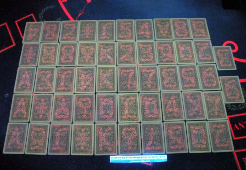 Престижные казино не обманывают игроков, они и так зарабатывают большие деньги, предоставляя честную игру. Главное «шулерство» – это низкий процент выигрыша в автоматах и большой процент рейка за игровыми столами. Но, все же есть ряд заведений, которые не упустят шанса обмануть наивных и расслабленных игроков. К тому же, иногда мошенничеством занимаются сами игроки, обманывая казино и других игроков. Вот 5 самых распространенных методов обмана в покере: Меченые карты Меченые или, как их ещё называют – крапленные, карты – это специальные карты, которые имеют скрытые пометки (крап), видимые только шулеру и незаметные обычным игрокам. Это древний и популярный способ обмана. Но, также почти нереальный в условиях современного казино, так как пронести свою колоду в игру – нереально. Другое дело – подпольные и домашние игры. Впрочем, защититься от этого метода обмана не очень сложно – просто стоит держать карты за фишками или накрывать их кардпротектором. Это явно усложнит работу шулерам. Сг