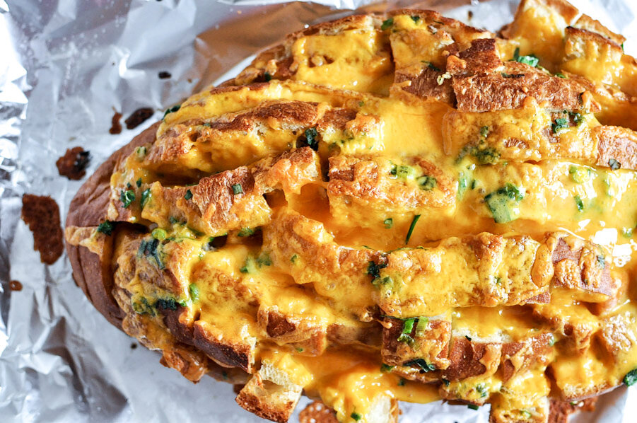 Ингредиенты: ✓ 1 батон, лучше «вчерашний» ✓ 100 г сыра любого ✓ 100 г сливочного масла ✓ 2-3 зубка чеснока ✓ зелень петрушки и укропа по вкусу Заходите на мой сайт и читайте ещё больше новых рецептов Рецепт приготовления Сыр натереть на терке, если плохо трется, убрать в морозилку на 15-20 минут. Чеснок почистить и пропустить через пресс, добавить размягченное сливочное масло, тертый сыр и мелко порезанную зелень, все перемешать. В батоне сверху сделать надрезы наискосок прорезая не до конца, заполнить их сырной начинкой.Завернуть хлеб в фольгу, отправить блюдо в разогретую до 200 градусов духовку на 20 минут. Затем фольгу приоткрыть и оставить еще на 5 минут, чтобы хлеб слегка подрумянился. Готовую закуску с сыром подавать порезав на ломтики по уже сделанным надрезам, либо порезать рядом острым ножом, тогда начинка останется внутри. ПРИЯТНОГО АППЕТИТА! Если Вам понравилась статья, ставьте лайк и подписывайтесь на мой канал в Яндекс.Дзен!