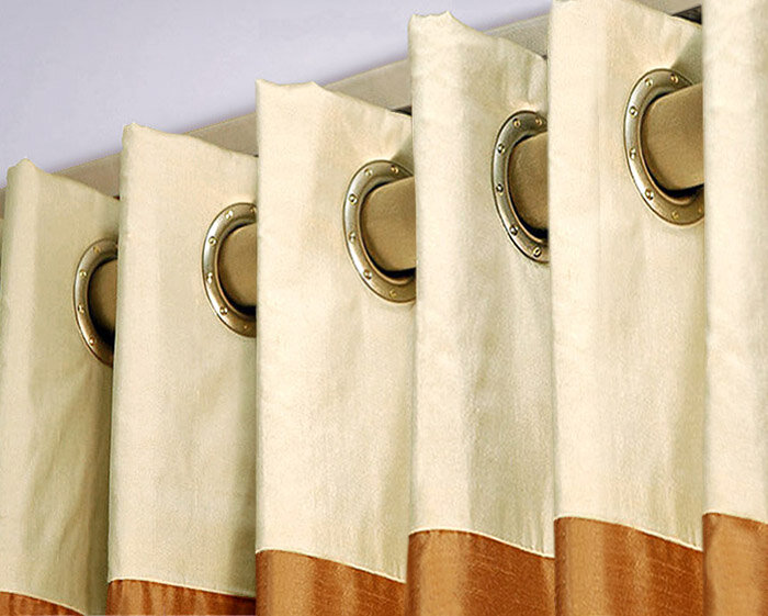 Кольца Они надеваются на карниз, а сама штора крепится к кольцу при помощи крючков и тесьмы. Принцип крепления схож с предыдущим, разница лишь во внешнем виде и в том, что кольца немного нарушают стройную драпировку самой тесьмы. Люверсы Ими называю