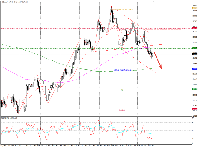 Откровенно говоря, покупки золота против доллара США, в перспективе трёх месяцев сейчас не очень актуальны и вот почему: -золото преодолело предыдущую квартальную поддержку на уровне $1280 и образовало новый минимум, что предполагает его дальнейшее снижение к значению $1250, и даже возможно к уровню $1220 (рис.1). Снижение золота на данном временном горизонте также подтверждается позициями трейдеров - спекулянтов на фьючерсном рынке в США, которые с начала апреля увеличивают продажи и сокращают покупки.Дело в том, что именно позиции трейдеров - money manager, на рынке золота, определяют его цену. Как только американские биржевые фонды продают золото его цена в долларах падает, когда фонды начинают покупать, цена золота растёт.