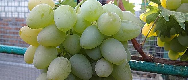 В настоящее время виноградарство приобретает все большую популярность среди обладателей приусадебных участков. Благодаря работе селекционеров появилось большое количество морозоустойчивых сортов, отличающихся высоким иммунитетом к заболеваниям и неприхотливых в уходе. Одним из них является виноград Монарх. Характеристика Монарх относится к белым столовым сортам раннего периода созревания. Лоза сильнорослая, длина основных рукавов от 250 до 300 см, с большим количеством побегов длиной до 1,5 метра. Грозди крупные, массой 600 —1000 грамм, конической формы с сильно выраженным мускатным ароматом. Ягоды крупные, продолговатые, массой 15—20 грамм. Мякоть плотная, сочная, кожица тонкая, нежная. Зрелые ягоды имеют медово-желтый окрас. Зерен в ягодах не более 3 штук. Достоинства и недостатки К преимуществам винограда Монарх можно отнести: Недостатком является повышенный интерес ос, необходимость применения тканевых мешочков для защиты от насекомых. Выбор участка Для успешного культивировани