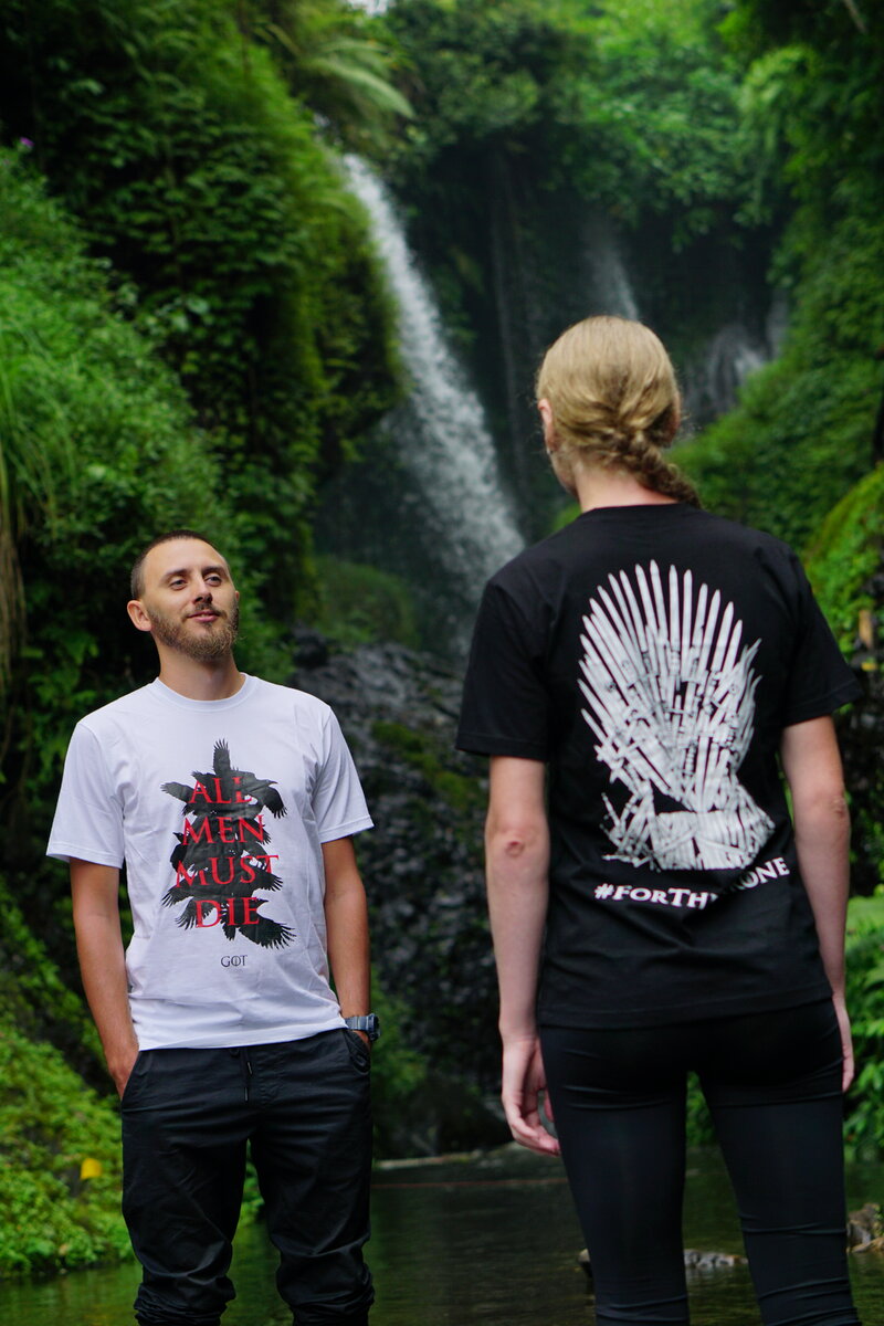 Однажды я на секунду замечтался, представил себя фотомоделью 😹😹😹 ⠀ И вот сбылась моя маленькая мечта 😹 Хозяин квартиры, где мы сняли комнату, предложил бартер. ⠀ Мы позируем для рекламы футболок, а он возит нас по достопримечательностям. ⠀ Правда, как только мы вышли из машины, ливанул дождь, и толком ничего так и не отсняли. Зато наговорились. Я рассказывал ребятам русские народные сказки и показывал персонажей. Прикольно провели время.