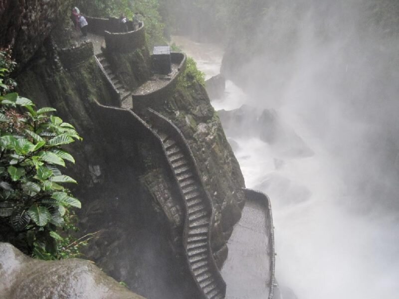 Самые необычные и жуткие лестницы в мире, на ступеньках которых дух захватывает и открываются потрясающе красивые виды. 1. Лестница рядом с водопадом Пайлон дель Дьябло, Эквадор В Эквадоре есть замечательный по красоте водопад с устрашающим названием "Котёл дьявола". Чтобы любоваться водопадом, на скале вырубили винтовую лестницу, которая овивает водопад. Каменные ступени очень скользкие, разной высоты, поэтому подниматься по ним очень опасно. 2. Ступени Инков, Перу Древний город Мачу-Пикчу в Перу очень привлекателен для туристов. В городе очень много крутых лестниц. Одна из самых протяжённых и опасных ведёт к храму Луны. В ней около 600 ступеней, перил и ограждений нет, так что подъём по ней - испытание не для слабонервных. 3. Небесная лестница на гору Хуашань, Китай Это одна из самых страшных лестниц в мире. Состоит она из шатких досок, прибитых к камням, а так же каменных ступеней, вырубленных в скале и цепей в качестве поручней, и не даром называется "тропой смерти". Точн