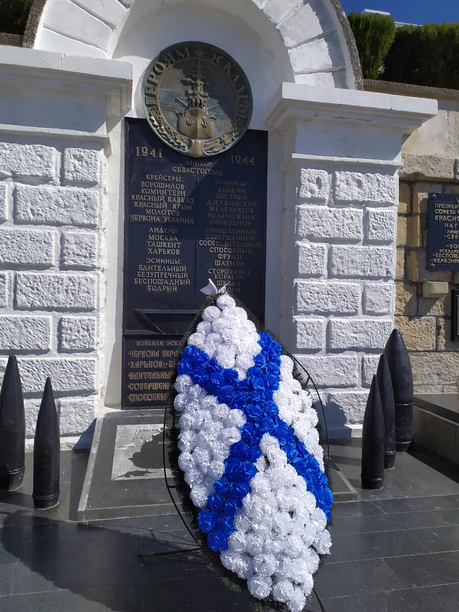 Спускаясь по набережной Корнилова проходим возле Дельфинария, и попадаем к памятнику Героям Эскадры: