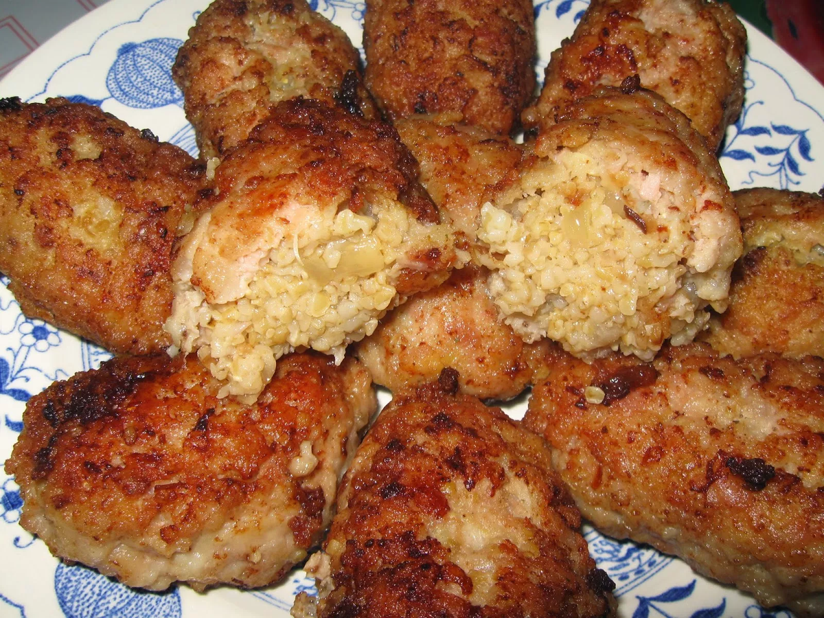 Зразы говяжьи с пшеничной кашей - это ломтики мяса с начинкой из каши, благодаря нескольким этапам приготовления зоазы получаются сочные и вкусные. Количество - 4 - 6 шт., Время приготовления - 1 час, Ингредиенты: · говядина филейная или телятина - 800 гр., · луковица - 1шт., · крупа пшеничная - 0,5 стакана, · бульон или разведенный в воде бульонный кубик - 1 стакан, · Яйцо - 2 шт., · панировочные сухари · соль, перец черный молотый - по вкусу, · масло сливочное - 2 ложки, · мука - 1 столовая ложка, · перец черный в зернах, · лавровый лист - 2 шт., · зелень. Способ приготовления: 1. В подсоленной воде сварить пшеничную кашу. Рецепт пшеничной каши можно взять здесь. 2. Порезать мелко лук и смешать с кашей. 3. Распустить говядину на плоские и широкие ломтики толщиной меньше мальца, отбить, посолить, поперчить. 4. Положить начинку из лука и каши в ломтики филе, свернуть каждый кусок трубочкой, крепко обвязать ниткой или защипнуть зубочисткой. 5. Немного взбить яйцо и обмакнуть в нем р