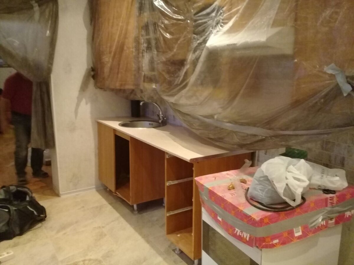 У Вас идет крупный ремонт? Вам нужна бюджетная временная столешница, и у Вас уже нет времени самостоятельно что-то делать? Мы Вам поможем! Посмотрите, данная столешница была установлена в разгар ремонта, наши специалисты не боятся сложностей, а смело смотрят им в лицо! Монтаж был произведен в непростых условиях, но был выполнен достаточно быстро. Так же обратите внимание на качество выреза под фановую трубу. Специалист приезжал 22го числа, столешница была установлена 28го, весь заказ с учетом всех материалов, работ по распилу и установки обошёлся в 8000 рублей.