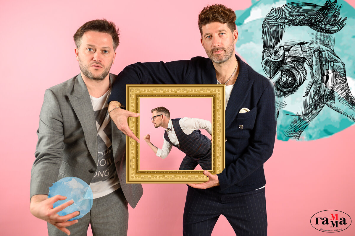 Артисты Comedy и ведущие Дмитрий Кожома, Иван Пышненко (Москва) и ведущий Дмитрий Веселов (Рязань) в творческой фотозоне от компании Гамма и Дмитрия Вороширина, Сочи, 21 апреля.