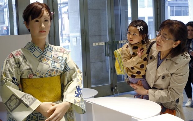 Японская компания Toshiba представила робота, чей внешний облик максимально приближен к человеческому. Робота-женщину показали в универмаге «Мицукоси» в Токио. Робота назвали Айко Тихира. Она одета в японское кимоно. У нее настоящие волосы с короткой стрижкой, светлая кожа сделанная из силикона, и лицо с глазами, которые могут моргать и прищуриваться. Во время разговора она реалистично шевелит губами и открывает рот. Также она может жестикулировать и двигать головой. В скором времени робота переведут на работу в кафе, где она должна будет приветствовать гостей и завлекать посетителей. На создание робота потребовалось десять месяцев. Сейчас компания занимается созданием еще двух моделей. Как ожидается, они будут еще более подвижными и реалистичными. Как сообщил на презентации сотрудник отдела разработок и развития компании Toshiba Тайхэй Ямагути, имя робота было создано из чтений первых иероглифов нескольких слов. «Тихиро» состоит из начальных иероглифов «земля» и «мир» и означает, таки
