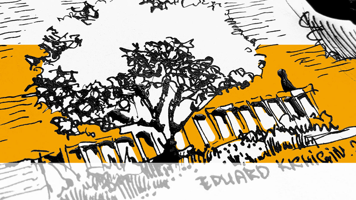 Еще один интересный и простой способ рисовать деревья и окружающий пейзаж. Полезно для ландшафтных дизайнеров и архитекторов, я собственно к ним и отношусь. Видео рисования я оставил в конце статьи - смотрите - там все подробно, а сейчас - по этапам: Начинаю с простого наброска - рисую землю, рисую ветви куста, рисую крону куста. Для рисования я использую не линии - а характерные закорючки - они прекрасно передают характер зеленой растительности. Затем такими же закорючками я прорисовываю тени. И намечаю забор. Стараюсь рисовать текстуру листвы аккуратно, не допуская спешки - спешка приводит к неэстетичному наброску. Немного дорабатываю ствол и землю под кустом. Я рисую пером и тушью - в данном случае - перо " Звездока", тушь - "Гамма" . Иногда использую линер - но он дает менее эффектную линию и более условный результат. А перо - кроме того - и само - невероятно эстетичный инструмент, и, как видно на этой фотографии - дает на рисунке рельеф из луж туши. Смотрите видео - где я ри