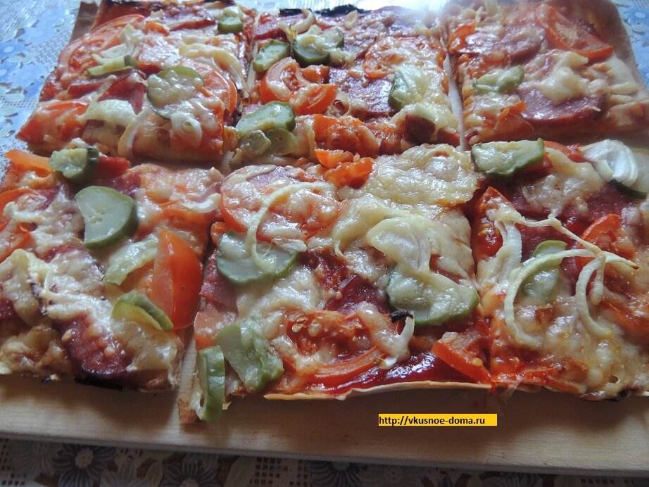 Домашняя пицца на армянском лаваше с колбасой и сыром