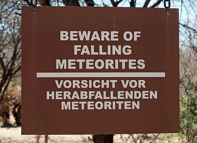 Гоба прилетел на Землю 80 000 лет назад. Он упал настолько деликатно, что не оставил кратера, а его открытие было чем-то из разряда "Ну я лопатой-то тяпнул, а там дзыньк!".
