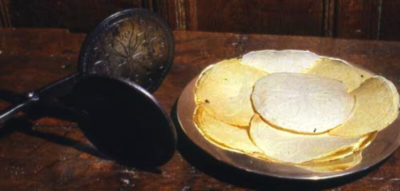 Как-то раз попался мне на глаза один древний кулинарный альманах. изданный в Лондоне аж в 1658 году. Автор издания - Архимагирус англо-галлический Ор (я до сих пор не знаю - то ли это имя, то ли церковный сан). а сама книжка называлась Excellent & Approved Receipts and Experiments in Cookery (Отличные проверенные рецепты и кулинарные эксперименты). И чтобы вы думали я нашел там? Вафли! Да-да, рецептик так и назывался Как сделать вафли Возьмите розовую воду или другую воду, белки двух яиц, взбейте их и смешайте с водой, полученную смесь влейте в муку и сделайте густое тесто, как вы делали бы его для оладий, затем приправьте солью и добавьте столько сахара, сколько нужно, чтобы получилось достаточно сладко. Готовое тесто нужно выложить на горячую поверхность вафельницы и прокатывать небольшой деревянной скалкой. чтобы получить тонкие пласты, добавьте больше сахара в ваше масло для жарки, для того, чтобы вафли было бы легче перевернуть. Технология немного улучена сегодня, но принци