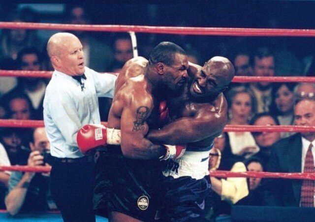 Можно заявить, что рефери не справился и поплыл, но принимать правильные решения по ходу обычного поединка часто сложно. Насколько сложно реагировать на события в таком поединке представить невероятно трудно. Он должен был наказывать Холифилда, да. Но не факт, что это все равно не привело бы к похожему итогу.