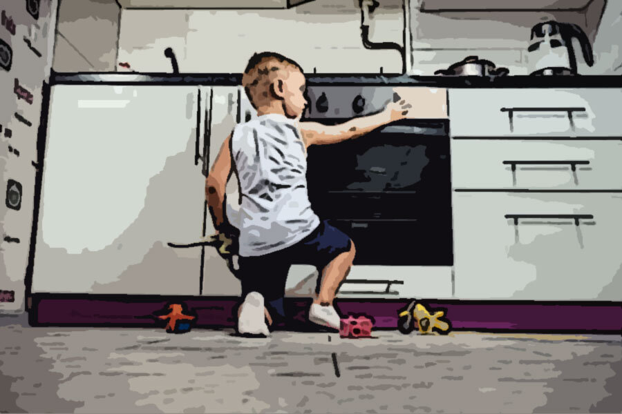 В доме проведена соответствующая подготовка – шкафы, куда ему не нужно лезть, закрыты на защелки или замки. Часть комнат так же под замком. Газовая плита перекрыта краном, о котором ребенок не знает.