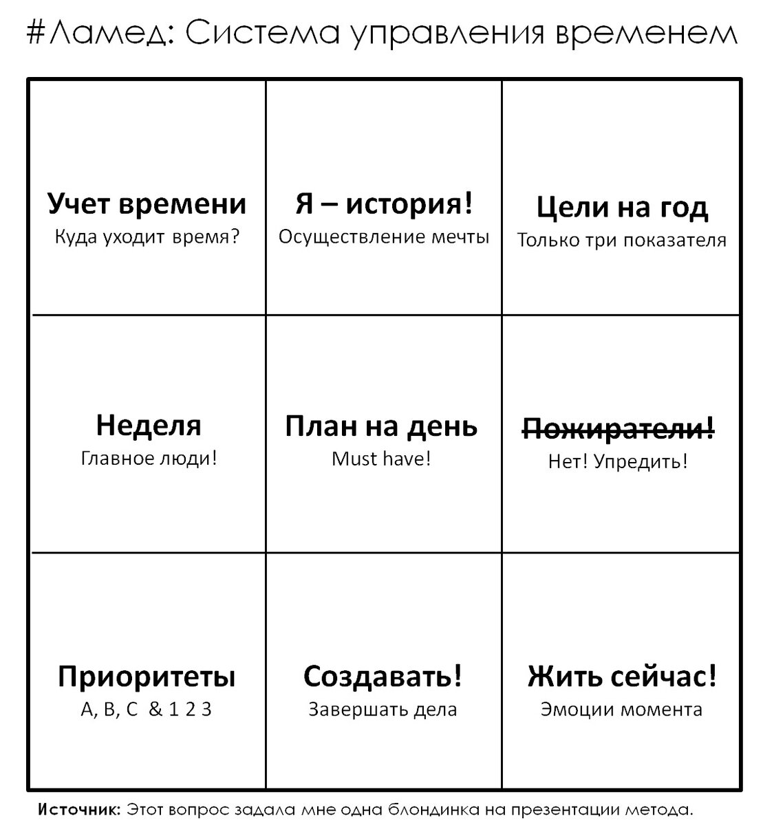 Я хочу представить Матричную систему управления временем построенную на методе Гипермышление. Достаточно одного взгляда, чтобы все увидеть. Достаточно одного действия, чтобы попробовать. Одна матрица 3х3 заменит десяток книг и пару тренингов по управлению временем, по сути вы уже начнете экономить свое время.