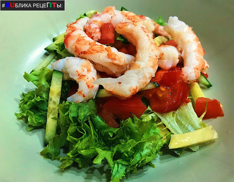 Дорогие друзья! Подписывайтесь на наш канал! Ингредиенты · Креветки 250 г. · Помидоры 2 шт. · Кабачок 300 г. · Чеснок 2-3 зубчика · Зеленый салат · Соль, перец, специи по вкусу · Оливковое масло Приготовление 1. Тщательно вымойте все овощи и нарежьте их полосками или ломтиками. В большую сковороду налейте немного масла, положите соль, перец по вкусу, затем добавьте овощи, тушите до состояния полуготовности 2. В кастрюлю положите немного оливкового масла и каплю воды затем нарезанный чеснок. Начинайте нагревать, но смотрите чтобы чеснок не сгорел, при необходимости наклоните кастрюлю и дайте воде испариться.
