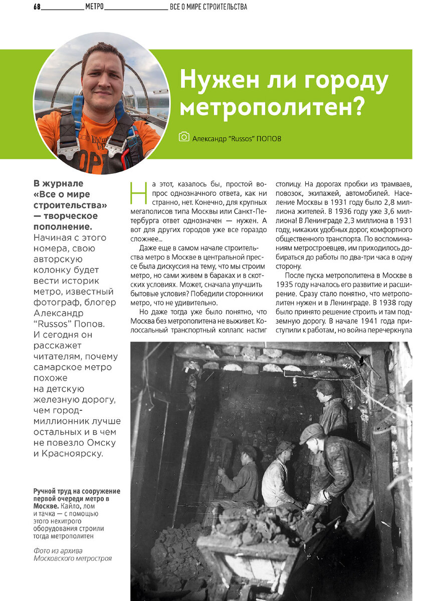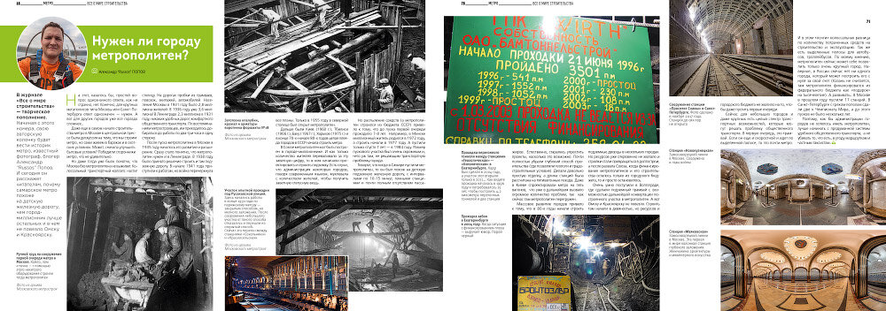 С начала этого года я сотрудничаю с журналом «Все о мире строительства» где веду авторскую колонку. Рассказываю о метрополитене, строительстве и о транспорте в целом. Вышло уже два номера с моим материалом.