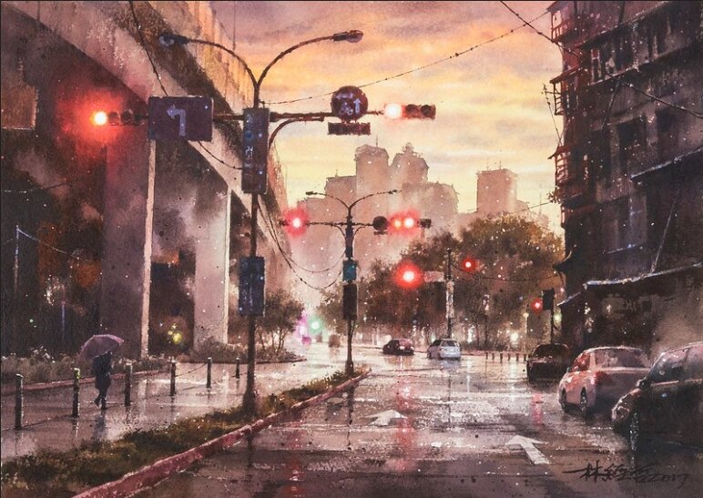 Всем привет! Раз уж занесло в акварель, я решил покопаться среди мировых звёзд, которые делают при помощи акварельных красок безумные вещи. Взгляд мой упал на молодого тайваньского художника - Лин Чинг Че, чьи работы уже не раз побывали в различных подборках на просторах сети. Сегодня я постараюсь показать вам его самые выразительные городские пейзажи. Краткая биография Лин Чинг Че родился в 1987 году в Тайбее и как пишут тут же начал рисовать. Ну точнее, в начальной школе, а потом в средней, а далее поступил в Тайваньский университет искусств, где продолжил свои занятия акварельной живописью. Несмотря на его возраст, он уже возглавляет несколько азиатских союзов и объединений художников-акварелистов. Больше данных на русском языке об этом талантливом художнике найти не удалось, поэтому дальше субъективные наблюдения по технике и мотивам Лин Чинг Че. Из особенностей необходимо выделить следующие: Вместо послесловия Надеюсь, что вам понравилось творчество Лин Чинг Че! Его прекрасные ноч