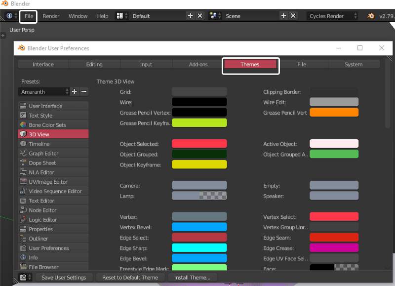 Еще один прием, который помогает сделать работу в 3D редакторе Blender максимально комфортной. Это возможность изменения визуального оформления. Попасть туда можно по обычному пути File — User Preferences и там найти вкладку Themes Количество элементов которые можно изменить — просто огромное. Именно поэтому имеет смысл на первых этапах воспользоваться темами. Особенно полезно это будет тем, кто пришел в Blender с других пакетов моделирования. Для них есть уже заготовленные темы Maya, 3D Max и других. А какая ваша любимая тема?