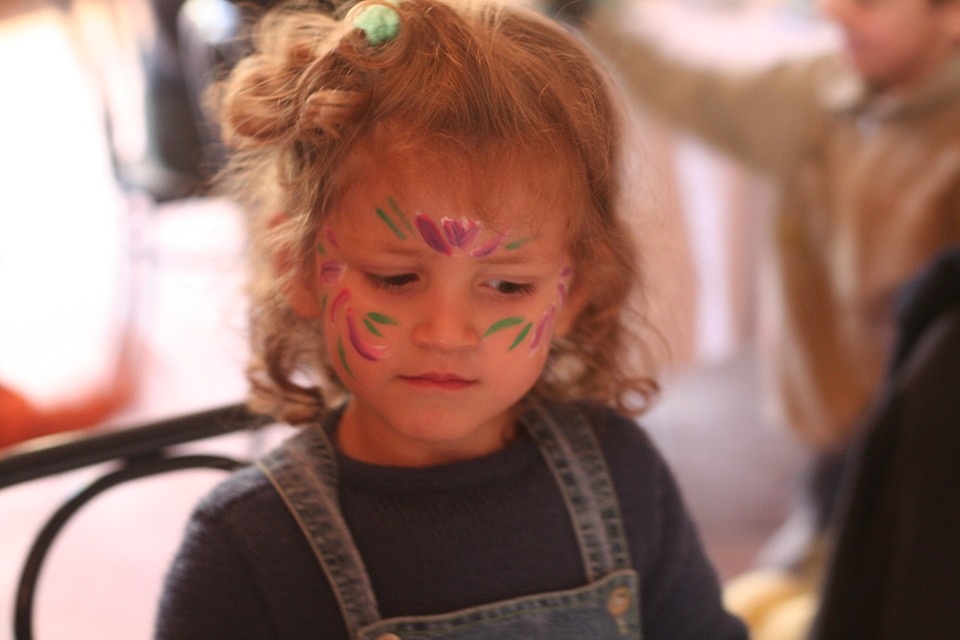 Моей любимой дочурке 5 годиков. Конечно, все родители так говорят, но она просто маленькое чудо. Однажды, когда мужа не было дома мне надо было сходить в душ. Чтобы не оставлять девочку одну я взяла ее с собой в ванную комнату. Пока я мылась она искала чем бы себя развлечь. Сначала рассматривала бутылочки с шампунем и остальными средствами, потом кривлялась и смотрела на себя в зеркало, а после ее взгляд упал на мою полочку с косметикой. Она сразу же заинтересовалась и начала брать принадлежности и наводить марафет стоя перед зеркальцем. Она старалась быть похожей на мамочку, брала мои любимые голубые тени, похожий оттенок помады и неумело красилась. Конечно же, у нее это не очень хорошо получалось, но несмотря на это эта забава приносила ей уйму веселья. Когда я вышла она, была полностью разукрашена. Она даже попыталась сделать косичку, как обычно делаю я. Это все выглядело на столько мило, что я захотела сфотографировать малышку и сохранить в памяти этот момент. Дочурка радостно улы