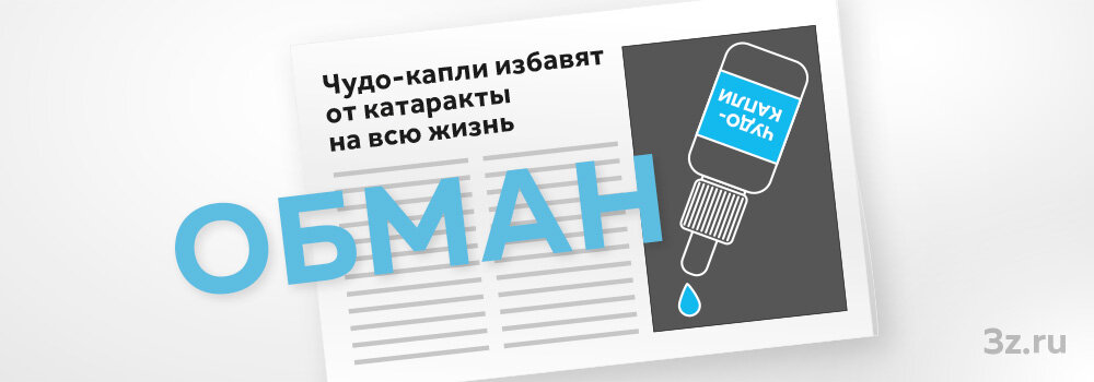 Миллионы людей страдают катарактой и готовы поверить в любые чудодейственные средства, которые дают простое избавление от недуга и позволяют восстановить зрение без операции. При этом витрины аптек пестрят разносортными упаковками и флаконами, газеты — народными средствами лечения, а реклама обещает гарантированный результат. В то же время доказательная медицина не имеет подтверждений тому, что таблетки, капли, гимнастика для глаз или народные средства могут предотвратить появление, остановить развитие или устранить катаракту. Чтобы в этом убедиться, давайте разберемся, почему появляется катаракта. С возрастом белок, из которого состоит хрусталик глаза, начинают мутнеть и уплотняться. Причем такие изменения носят необратимый характер. Процесс можно сравнить с тем, как яичный белок при нагреве сворачивается и превращается в яичницу. Вернуться в первоначальное состояние он больше не может, чем бы на него ни капали и как бы на него ни воздействовали. Именно поэтому лечение катаракты с пом