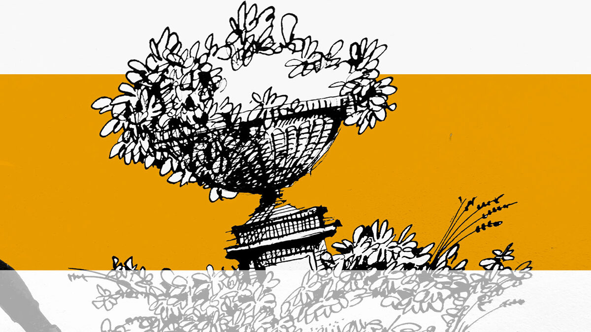 Как я рисую эффектную вазу с растениями. Ландшафтный эскиз пером и тушью- ручная графика.