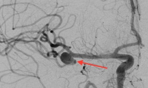 - Мы приняли решение начать с церебральной ангиографии - выявили аневризму средней мозговой артерии и выполнили ее эмболизацию, устранили источник кровотечения, - рассказал Сергей Шендеров. - И тут же приступили к коронарной ангиографии со стентированием коронарных артерий, поскольку после эмболизации уже можем ввести антикоагулянты. На ангиографии было обнаружено поражение передней межжелудочковой артерии, в которой и выявился на кардиограмме подъем сегмента ST. В эту зону имплантировали стент.