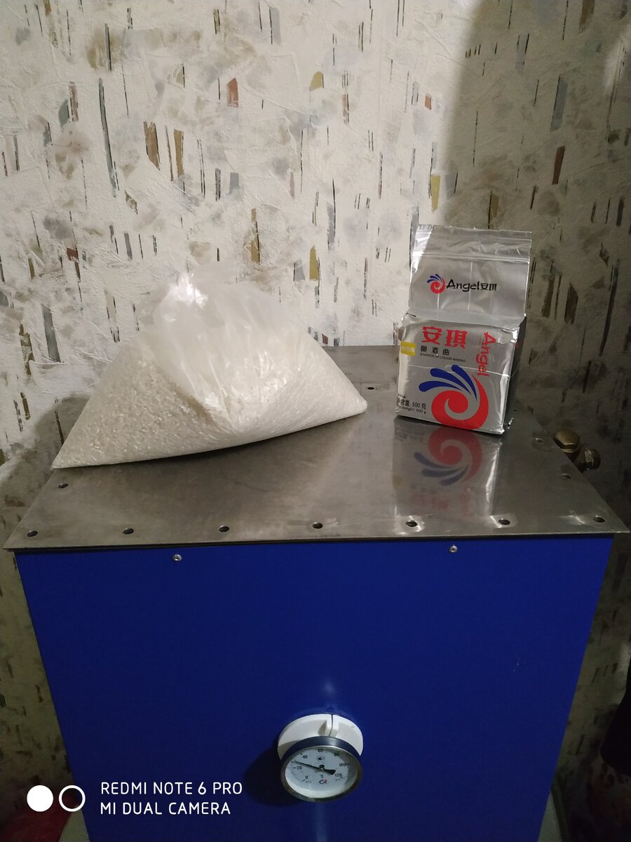 Всем привет. Одно из моих увлечений является самогоноварение. Основной ингредиент я использую сахар. У него хороший выход спирта и мороки с ним очень мало, но данная статья пойдет не об этом. Для меня хороший сахарный самогон очень пустой и безвкусный. Не хватает какой- то полноты вкуса. Поэтому я решил немного поэкспериментировать и сделать самогон из риса. Из интернета я понял, что рис тоже дает довольно таки хороший выход и придает конечному продукту мягкий бархатистый вкус. Так оно или нет я решил проверить. 1. Для начала мы берем чистую емкость и наливаем теплую воду температурой 35-38 градусов. В моем случае это 40 литров воды. 2. Из пропорции 4:1 мы вносим в бак с водой рис. В моем случае получилось на 40 литров воды 10 кг риса. 3. Берем китайские дрожжи "Кодзи" – это смесь специально селекционированной плесени, ферментов и дрожжей, готовая к осахариванию и сбраживанию БЕЗ ПРЕДВАРИТЕЛЬНОЙ ОБРАБОТКИ практически любого крахмалосодержащего сырья. Процесс брожения займет примерно 14