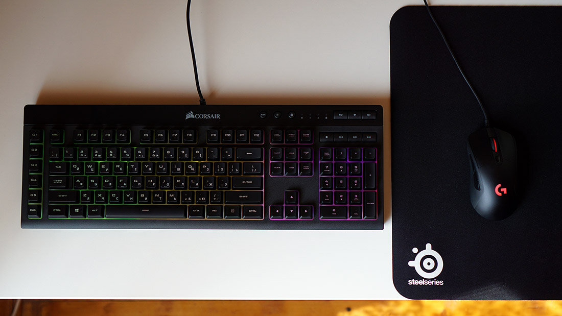 Corsair K55 RGB – клавиатура, которая во все соблюдает механический подход. Конечно, в отличие от той же механики, многие мелкие детали, которым бы в механике отдавали большее внимание, несколько упрощены, но в целом это очень достойный продукт, особенно если вы по каким-либо причинам не спешите перейти на механику, любите тихую работу или же просто привыкли к мембранным клавиатурам. Проще говоря, если механика – не ваш выбор, и вы настроены сугубо на мембранную клавиатуру, но хотите получить от нее все самые возможности и самые лучшие качества механических клавиатур, включая RGB-подсветку, мультимедийные функции и мощную поддержку ПО, то стоит обратить внимание именно на Corsair K55 RGB.