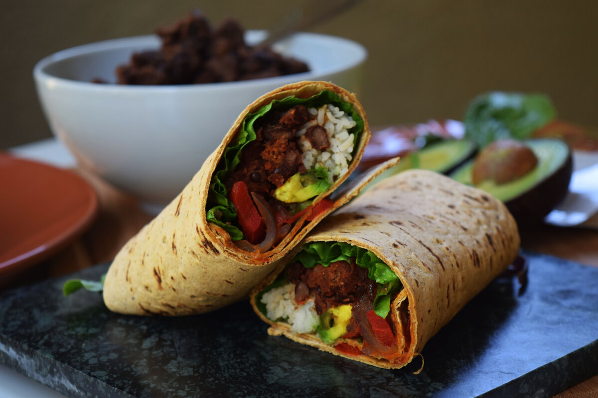 Что Вам понадобится? 1 столовая ложка растительного масла 1 красная или белая луковица или 4 нарезанных зеленых лука 400 гр овощей по вашему выбору (я использовала морковь, красный перец и сладкую кукурузу) 200 гр готовой курицы, нарезать небольшими кусочками 250 гр пачки лайма и кориандра 400 гр красной фасоли в соусе чили 6 больших лепешек 1 авокадо 100 гр тертого чеддера кислые сливки, подавать (по желанию) Способ приготовления Разогреваю масло в большой кастрюле. Добавляю лук и варю 5 минут до мягкости, затем добавляю все овощи и продолжаю готовить еще 5-10 минут. Добавляю мясо, рис и бобы, а также соус из банки. Размешиваю все вместе и готовлю в течение 5 минут. Пока греется сковорода, собираю буррито. Нагреваю лепешку на горячей сковороде в течение 10 секунд (держите сковороду горячей, вам придется использовать ее снова). Складываю примерно шестую часть рисовой смеси в центр лепешки. Заканчиваем с небольшим количеством авокадо и сыра. Складываю концы над начинкой, затем по бокам,
