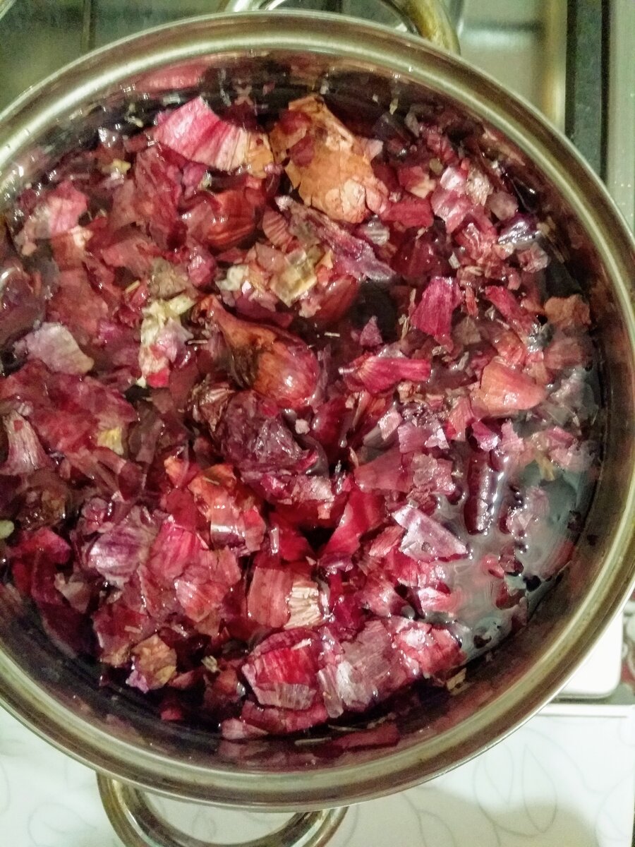 Яйца на Пасху - один из главных атрибутов Христианского праздника. Как покрасить яйца в луковой шелухе? Это, проверенный метод. Он нам нравится больше, чем использование пищевых красителей, поэтому уже не раз используем для покраски луковую шелуху. Мы ее подготовили заранее. Кстати, использовали шелуху от красного, а не репчатого, как обычно рекомендуют, и, несмотря на это, результат нас очень радует. Как покрасить яйца в луке: · яйца; · луковая шелуха (1 целлофановый мешок); · 1 столовая ложка соли; · вода. 1) В большую кастрюлю мы налили воды и поместили туда всю луковую шелуху. Довели ее до кипения. В общем она у нас варилась около 2-х часов. 2) Пока мы поставили варить красную луковую шелуху, мы вынули из холодильника яички и обмыли их. Использовали белые, но разница, как правило, небольшая. Если использовать темные, то цвет будет темней и насыщенней. 3) Уже через час вода потемнела. 4) Мы добавили столовую ложку соли, а затем поместили первую партию – это 5-7 яиц. Яйца буквально
