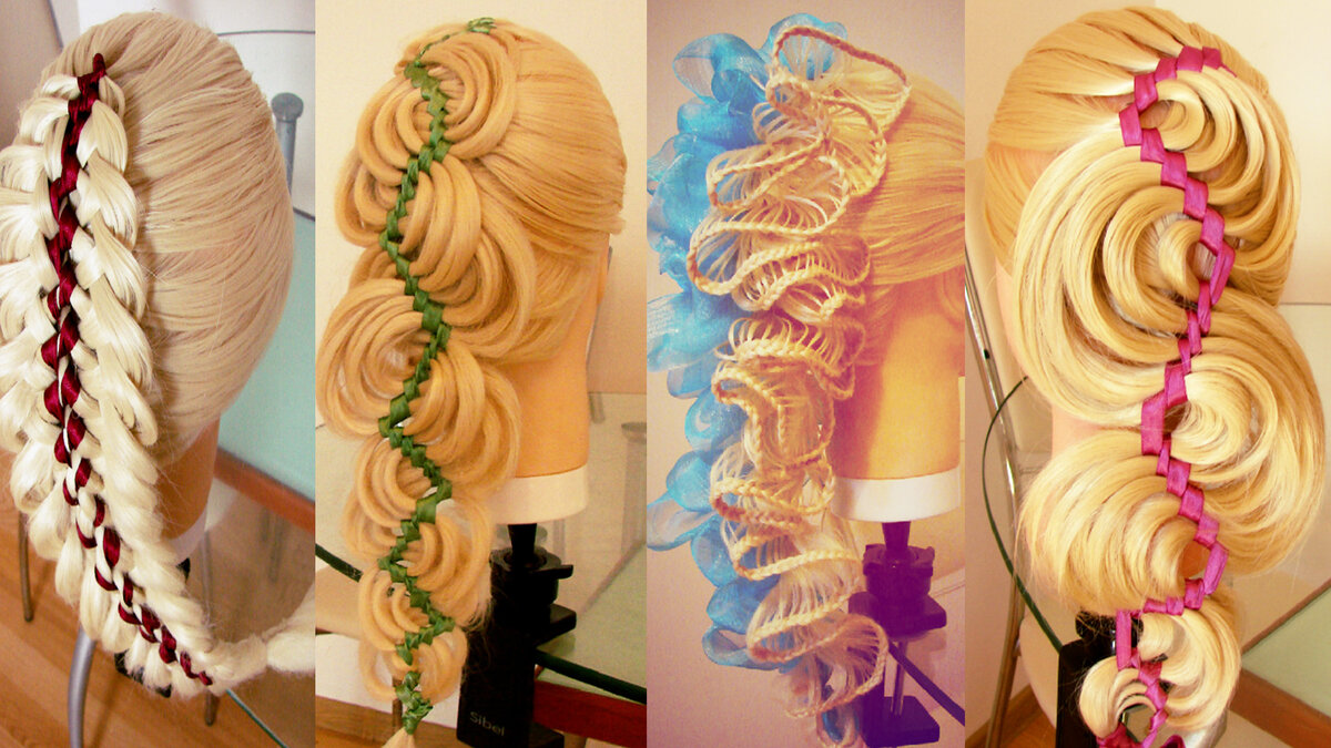 Необычные косы с лентами. Красивые причёски. Подробные видео уроки.